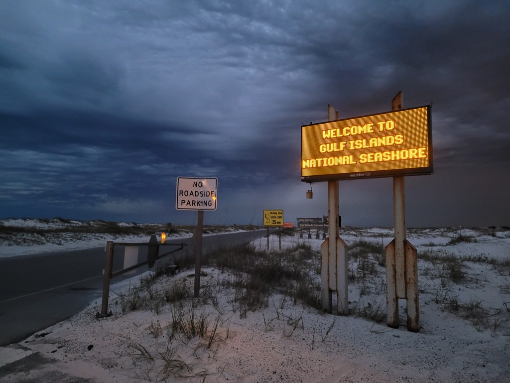 Then the rain started. Cold, fat drops hit me in the eyes. I peddled quickly toward Pensacola Beach, trying to reach the edge of the storm. After 10 minutes I succeeded, and the remaining ride through the National Seashore was peaceful. Save for the fact that I was soaked, and one of the tires kept flinging cold water onto my back. I tried to focus on the beautiful scenery, with mixed results: I kept getting lost in my muddled thoughts, my shivering body. I turned back after reaching the 10-mile mark, hoping for an uneventful ride back to the AirBnB.