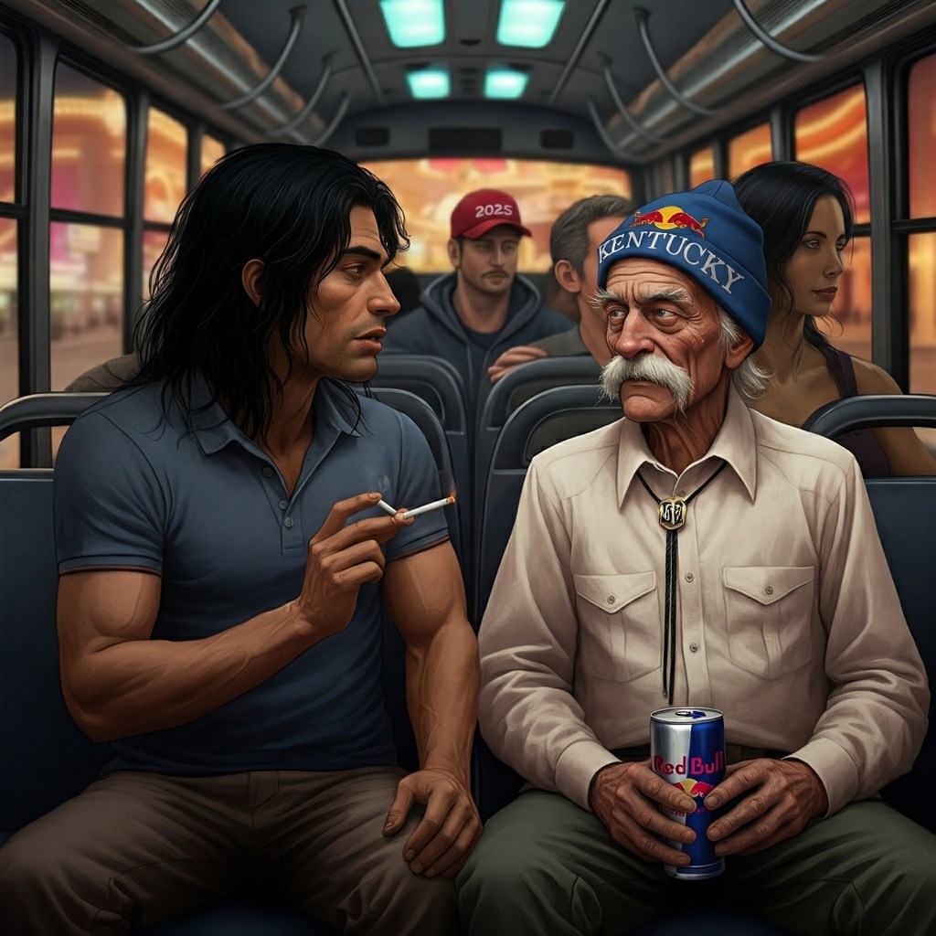 Before catching the shuttle to the casino, Papa, wearing a leather jacket and bolo tie, poured everyone a small cup of champagne and gave a blunt toast: “Happy New Year, because I am happy 2024 is in the dust and behind me. This past year has been extremely, extremely bad…so here’s to 2025.” Our shuttle driver was a robust old man who looked like Santa Claus, save the hairy wart on his left cheek. Over the driver’s seat was a golden plaque spelling out his name for the passengers: Kristoph. As Papa slid into one of the fraying green leather seats, he noticed a crumpled $50 bill jammed into the corner against the wall. Within a minute, we’d arrived at the casino.