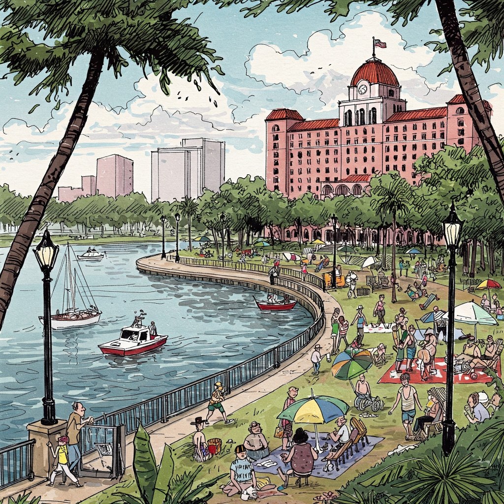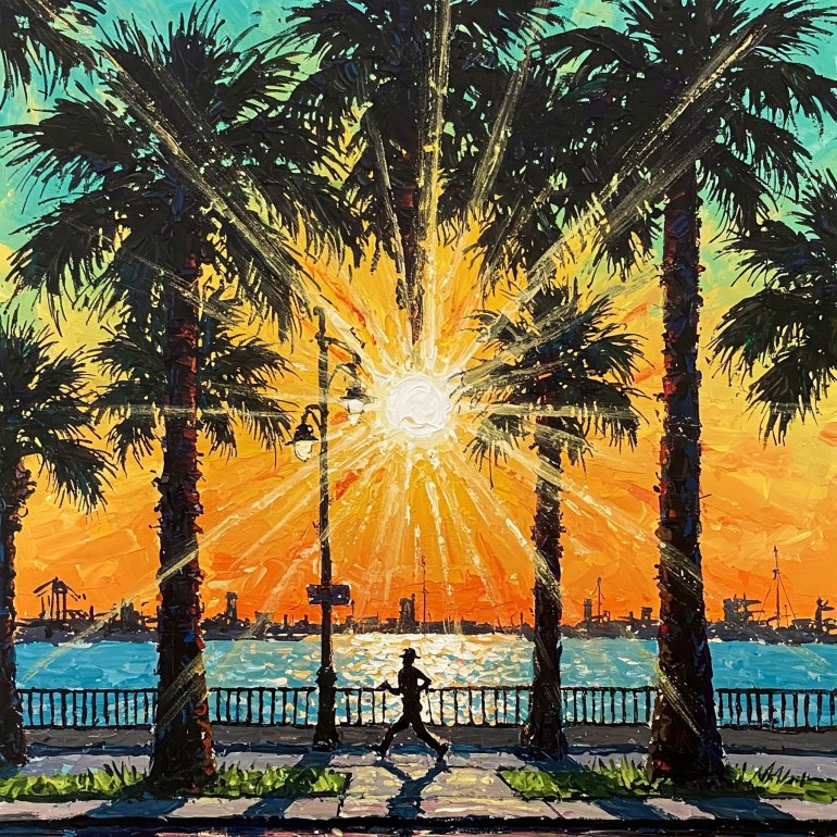 The next morning, instead of running through gator-laden Sawgrass Lake Park, I drove 15 minutes to the St. Pete waterfront and dragged my old(ish) bones around Vinoy Park and Old Northeast. Gorgeous two-story stucco homes were bathed in soft orange morning light as the sun rose perfectly through a cluster of palm trees at the water’s edge. I imagined my in-laws walking out here in the late ‘80s to admire the sunrise, their small but lively home just a few blocks away. It occurred to me that they were probably far too busy raising children and owning restaurants to admire any sunrise, ever, though a part of me hoped that, at least once, they’d walked out here and noted the temporal beauty of it all, before moving on with yet another day, swamped by the ceaseless demands of parenthood and a working-class existence. I sighed and tried to wipe all of that from my mind, snugging up my sneakers and taking off along the gray gator-less strip of cement that embraced the waterline like a hug, the air smelling like salt and decaying fish, and in its own distant way, like another home.