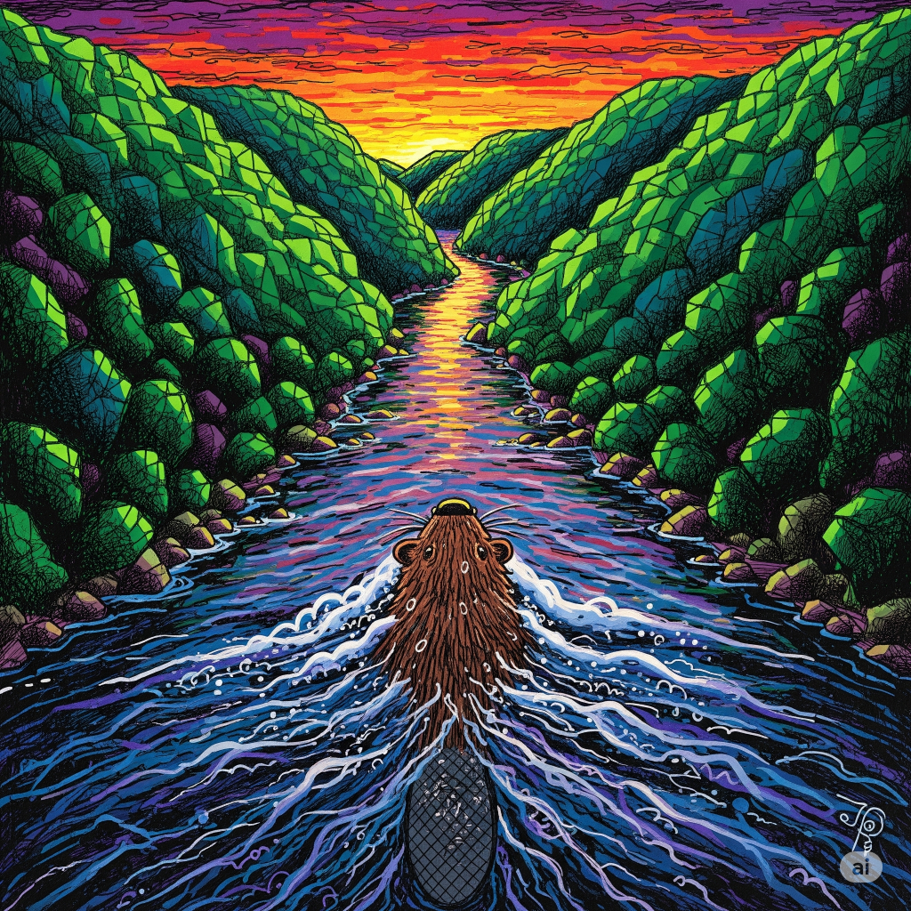 I watch the sunset from the perch of my rusty fold-up chair while sipping a hazy IPA, trying to focus my mind so intently that I’m able to witness the microscopic moments when my surroundings become just a little darker. I give myself pep talks, convinced that if I truly commit, if I quiet my monkey mind and focus on this one thing, that I’ll be able to notice those slippery mini-changes when one thing becomes another. I always fail. I am forever distracted. This specific time, the distraction is some kind of mammal, a beaver perhaps, that I see, out of the corner of my eye, swimming upstream through the blue twilight, its head poking out of the brown water. The rest of its body is submerged, propelling its furry, hot-blooded self onward against the current. Every few seconds, as if to throw off a predator that might be tracking it, the undisclosed beaver-like mammal (on second thought, it might be a groundhog) ducks its head underwater and stays there for five, 10, 15 seconds, before emerging several feet away, sometimes downstream, sometimes up. The creature does this three or four times, until finally it does not reemerge, or if it does, it’s somewhere beyond my range of sight. For all I know, the thing has swum to the bottom of the river and is currently digging its way to the other side of the Earth. Why not?